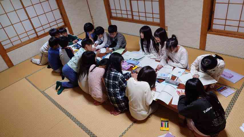 一日めの夕食後、今回のセカンドスクールで一回めの語らいの時間を行いました。 一日の振り返りを共有し明日へつなぐ、五小で大切にしている時間です。 はじめに自分自身の振り返りを日記に書いて確かめ、それをもとに宿の全員で話します。 生活指導員の二人に支えてもらいながら、やりとりを深めていくこの時間、日を追うごとに質が高まっていくことと思います。 明日は稲刈り、今のところ予定通り行えそうです。【添付ファイル】